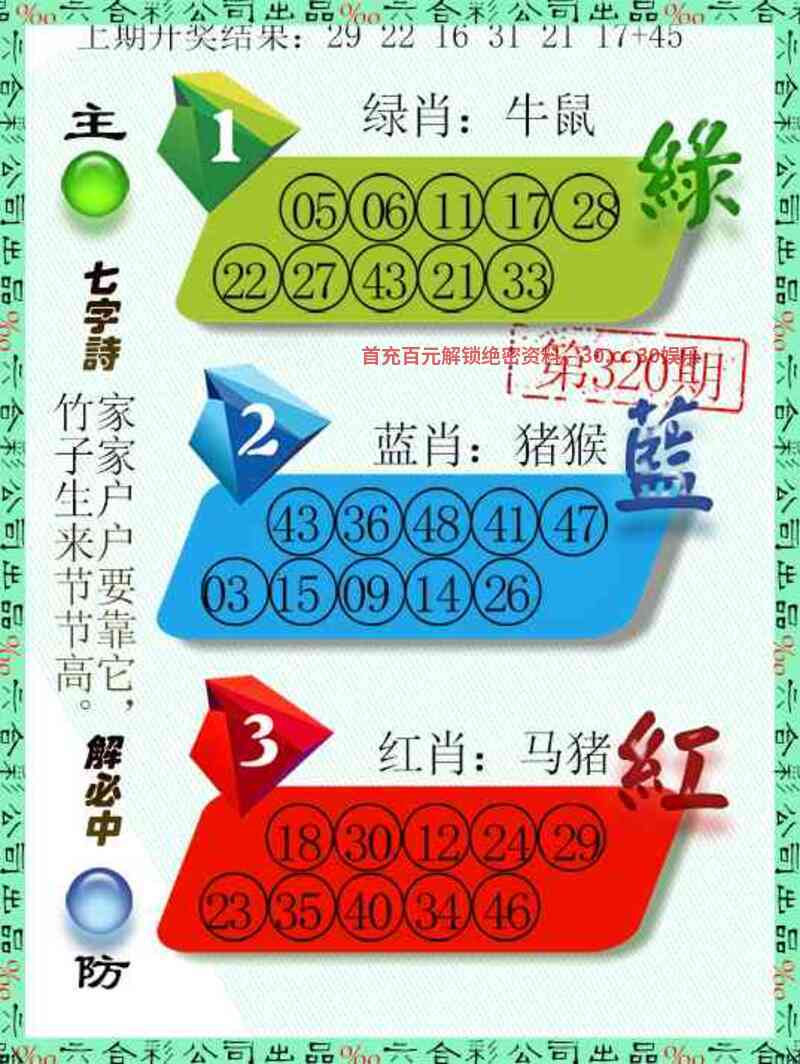 321期:黄大仙心水/简单好下注/台湾玄机诗/港台澳七肖/必中人物